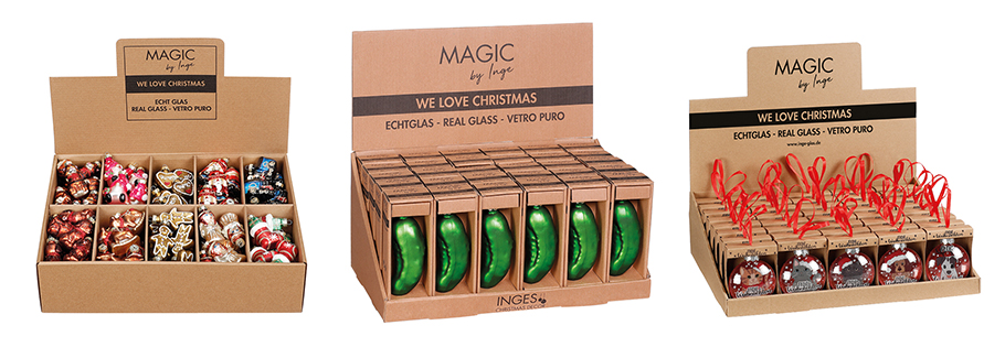 MAGIC by Inge besticht durch seine, im wahrsten Sinne des Wortes, magische Anziehungskraft: Mit einer großen Auswahl an dekorierten Glasornamenten aus industrieller Fertigung, in verschiedenen Preisklassen und das ideal darauf abgestimmte Zubehör sowie einer Vielzahl an Dekorationsartikeln inszenieren Sie einfach und schnell Ihr erfolgreiches „Winter Wonderland“ am PoS.