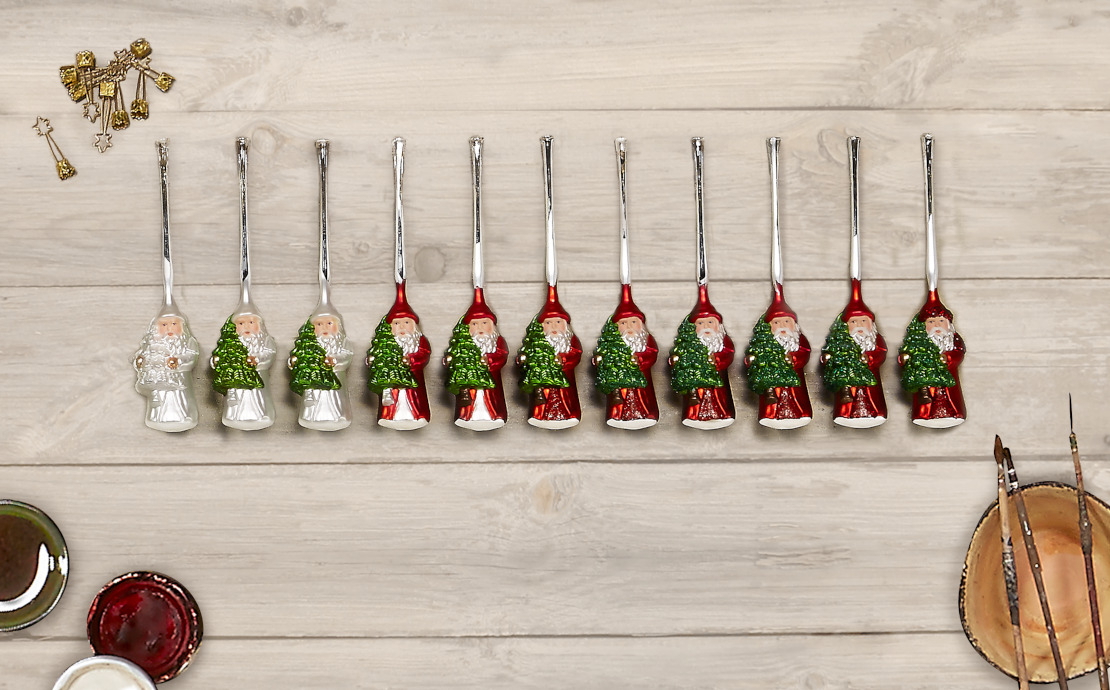 Mit Erfahrung und großer Sorgfalt wird jedes einzelne Glas-Ornament in der hauseigenen Manufaktur mundgeblasen und mit viel Liebe zum Detail handbemalt. Nur die besten Werkstoffe werden verwendet, von kristallklarem Glas über echtes Sterlingsilber bis hin zu den brillanten Farben. So entsteht handgefertigter Glasschmuck in höchster Qualität und von bleibendem Wert – für unvergessliche Weihnachtsfeste.