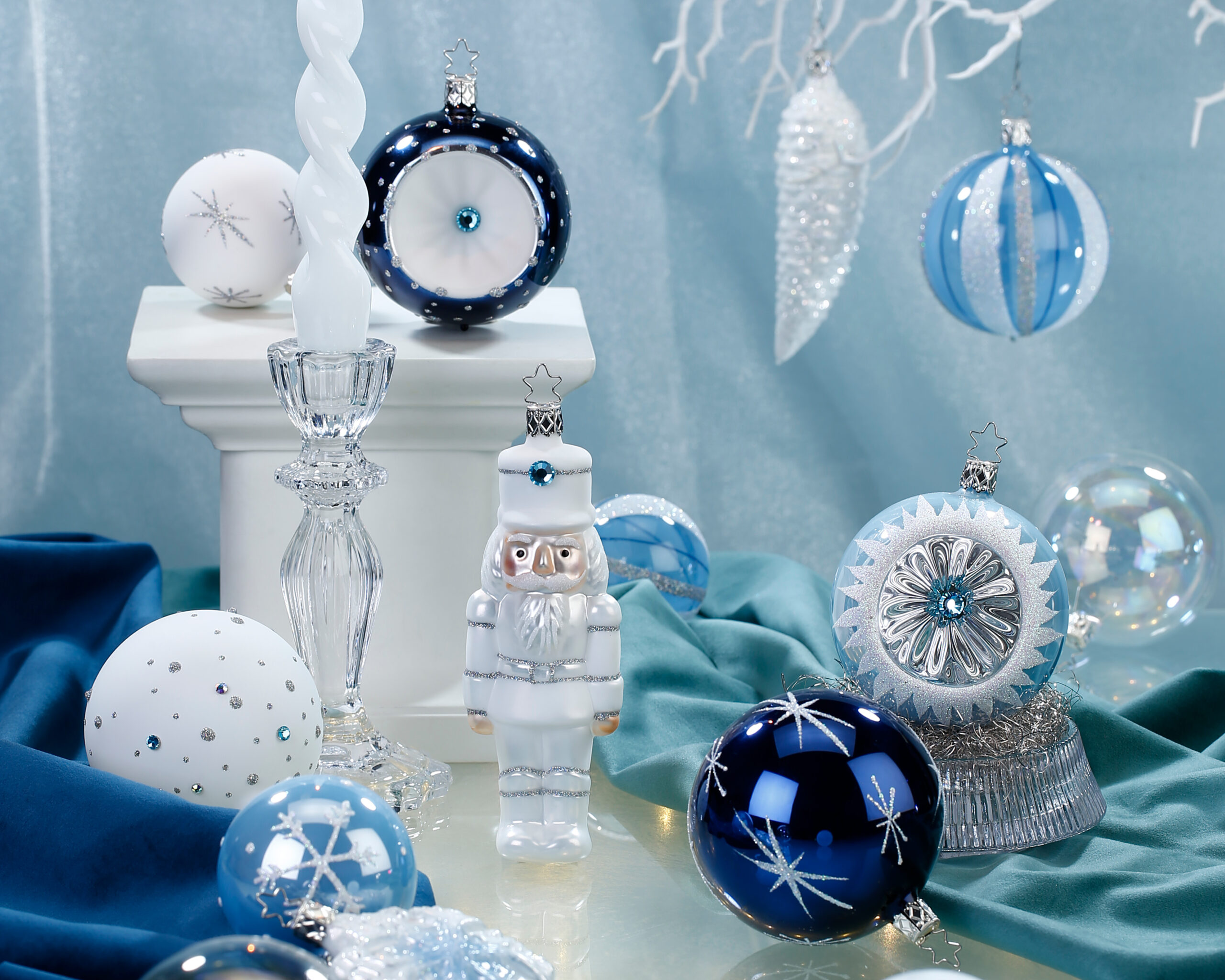 Die Kinder können den Besuch des Weihnachtsmanns kaum noch erwarten. Durch das Schlüsselloch versuchen sie einen ersten Blick auf den Weihnachtsbaum zu erhaschen. Endlich ertönt der süße Klang des Glöckchens – die Tür wird geöffnet! Da steht er, der Weihnachtsbaum, in seinem funkelnden Kleid und bringt alle Augen zum Leuchten – die schönste Zeit ist da! Durch die Kombination traditioneller Weihnachtsfarben mit Blau und Schwarz entsteht ein intensives Farb-Ensemble. Ergänzt wird es durch klassische Weihnachtsstern-Dekore und funkelnde Kristalle.